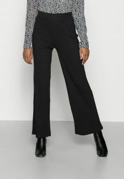 Anna Field RIBBED WIDE LEG TROUSERS – Pantalones – Black, Mujer